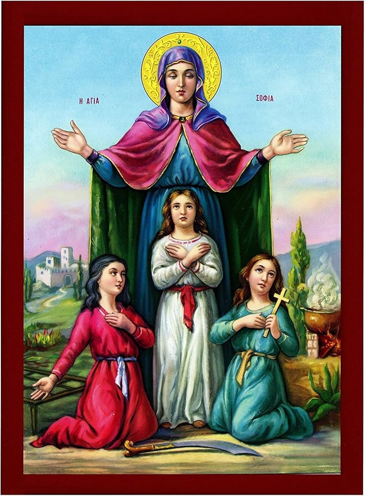 Da ricordare che Sofia era anche una illustre matrona di origine italiana, moglie del senatore Filandro e madre di tre figlie, che erano state chiamate con i nomi delle tre virtù teologali: Pistis, Elpis, Agape. Quindi la madre si chiamava Sapienza e le sue figlie Fede, Speranza e Carità.